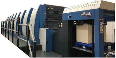 Litho printing is generally used for mass produced printing. This is done by placing the desired content onto a printing plate and covering the plate with ink. This ink on the printing plate is then transferred to a rubber blanket which is then transferred onto the paper.